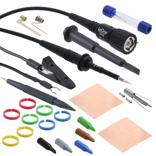 Kei roto Adapters, Adjustment Tool, Coding Rings, Copper Pad, Grounds, IC Caps, Insulating Cap, Manual, Sprung Hook, Tips Whakaahuatanga Taipitopito 10:1 Passive 500MHz 51.181" (1300.00mm) Black Oscilloscope Probe Test Lead 10M Input Resistance CAT I 400V, CAT II 300V
